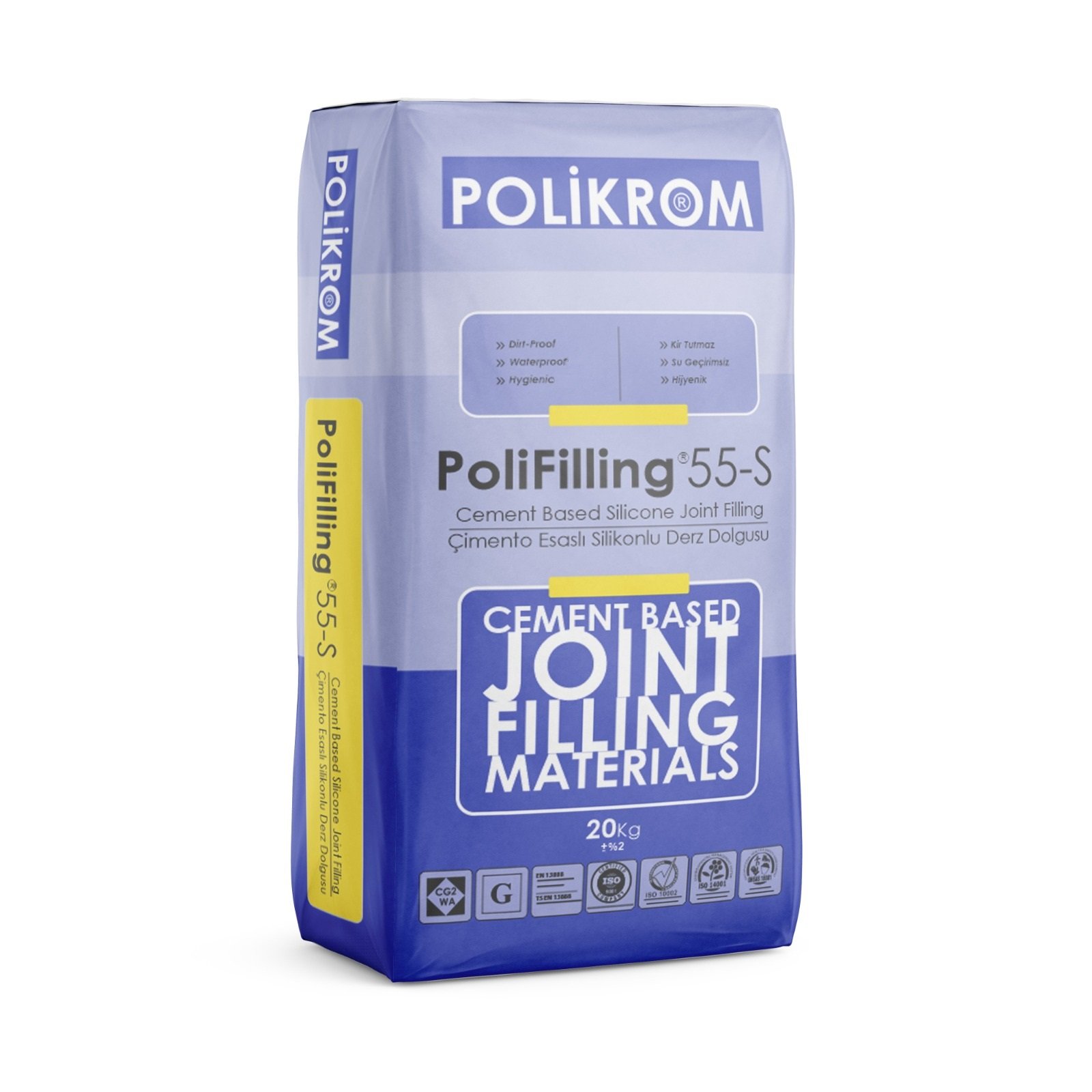 PoliFilling®55-S, çimento esaslı, seramik, fayans, porselen, mermer ve granit fugalar için geliştirilmiş dekoratif, sudan etkilenmeyen, titreşimlere, sıcaklık farklılıklarından oluşan uzamaya ve kısalmaya dayanıklı silikonlu derz dolgu malzemesidir.